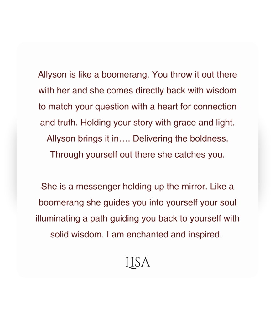 A priestess of the healing arts, Allyson draws from over a decade of wisdom gathered from elders, shamans, priestesses, and clinical experts. A Certified Psychedelic Medicine Facilitator, she walks the path of a shamanic apprentice and honors her lineage as a second-generation breathwork guide. Also trained in Kundalini Yoga and Meditation, her greatest teacher is her stepson with autism, his pure light mirrors her own journey toward wholeness. Beyond all titles, Allyson holds one truth: the deepest wisdom lives within, and her purpose is to help others remember it.